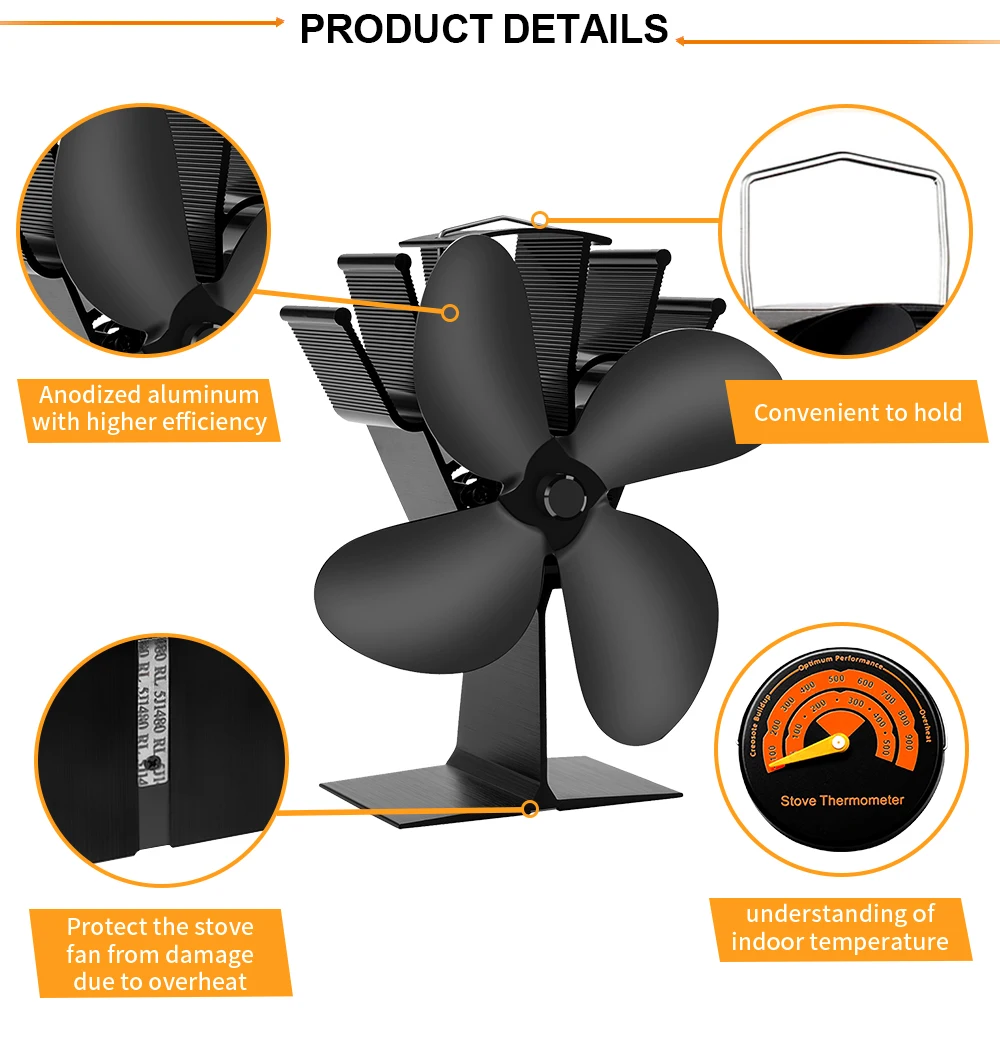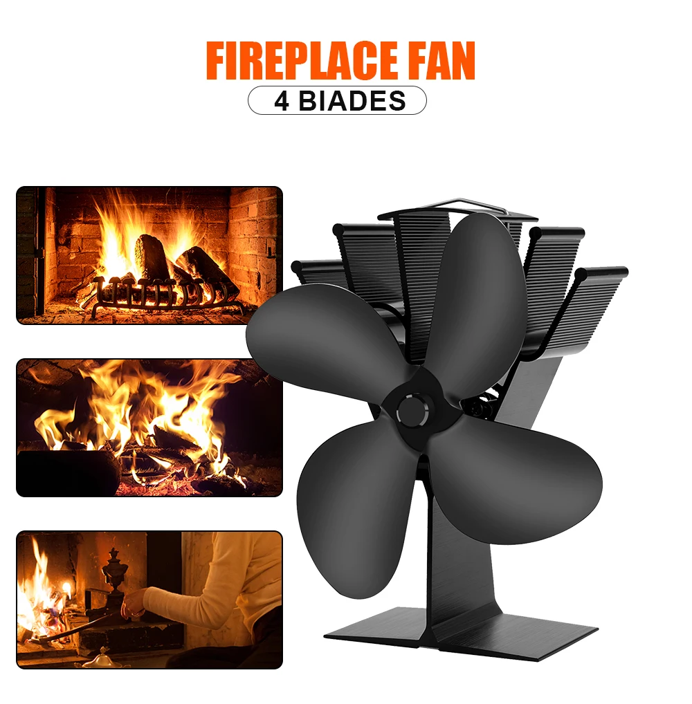 4 Blade Heat Powered Stove Fan Log Wood Burner Eco Friendly Quiet Fireplace Fan Winter Warm Home Efficient Heat Distribution