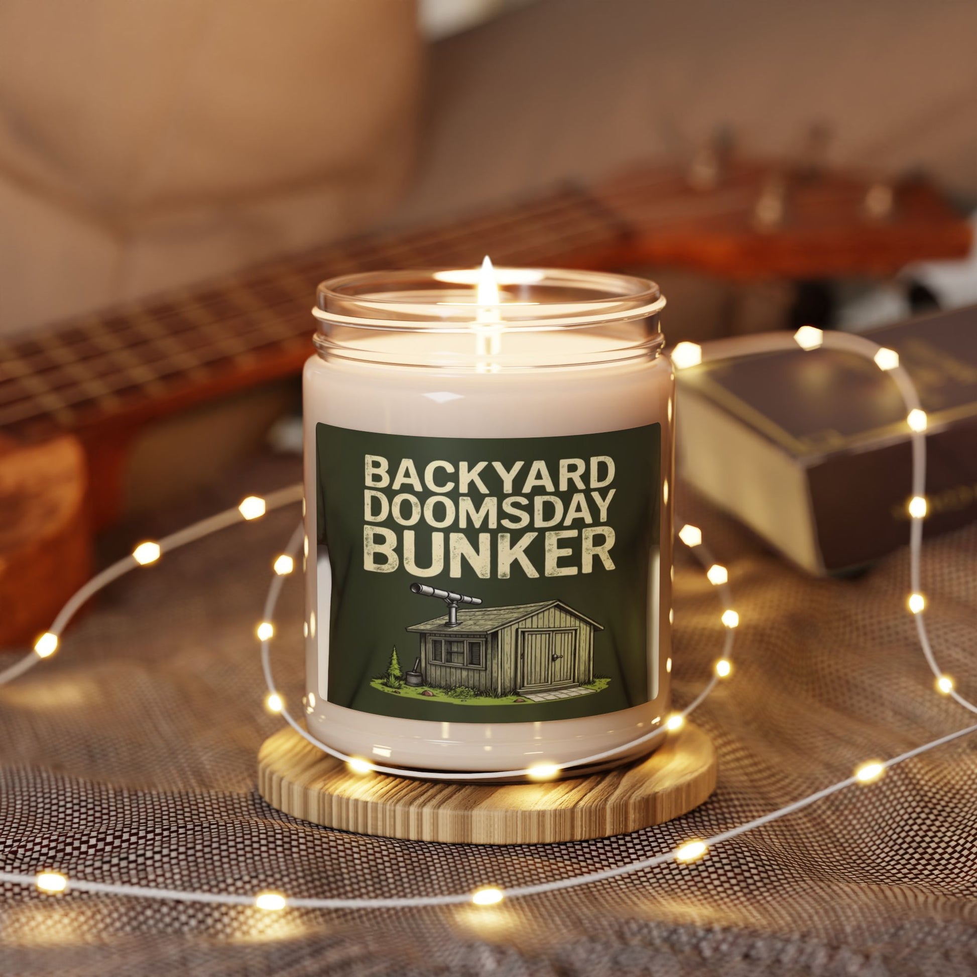 Backyard Apocalypse is a humorous graphic print that brings a playful twist to backyard decor. This eye-catching design recreates a Backyard Doomsday Bunker scene on an olive green backdrop, turning ordinary yard yarn into a conversation-worthy piece.