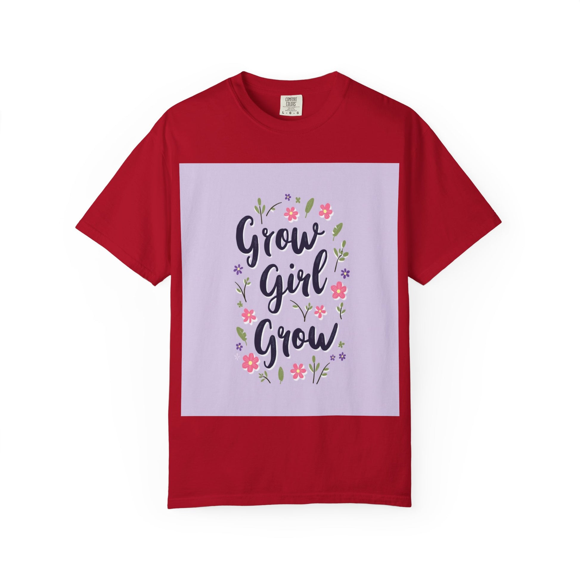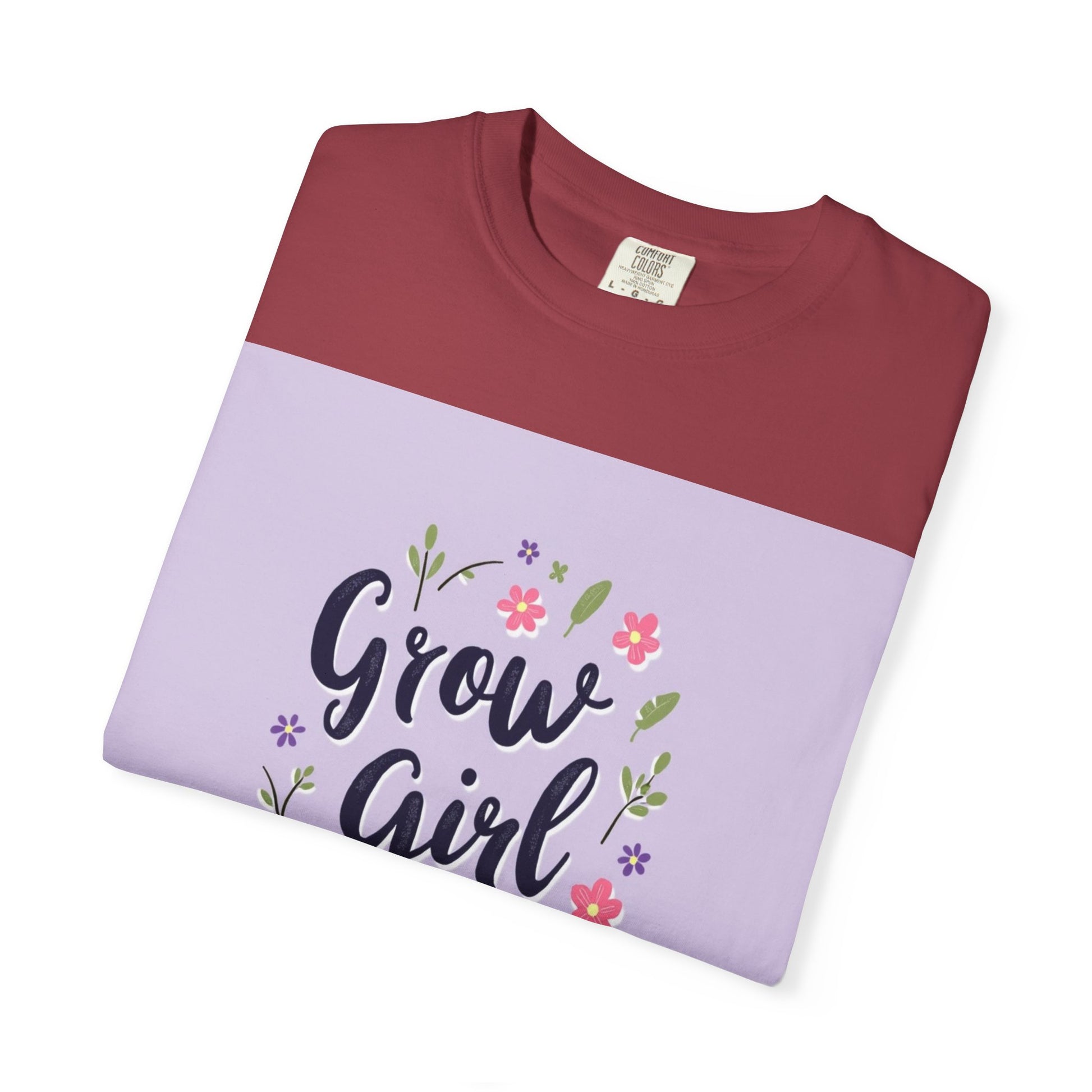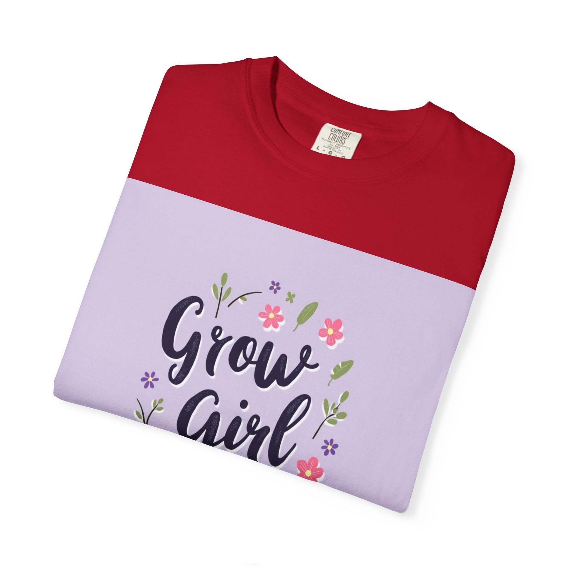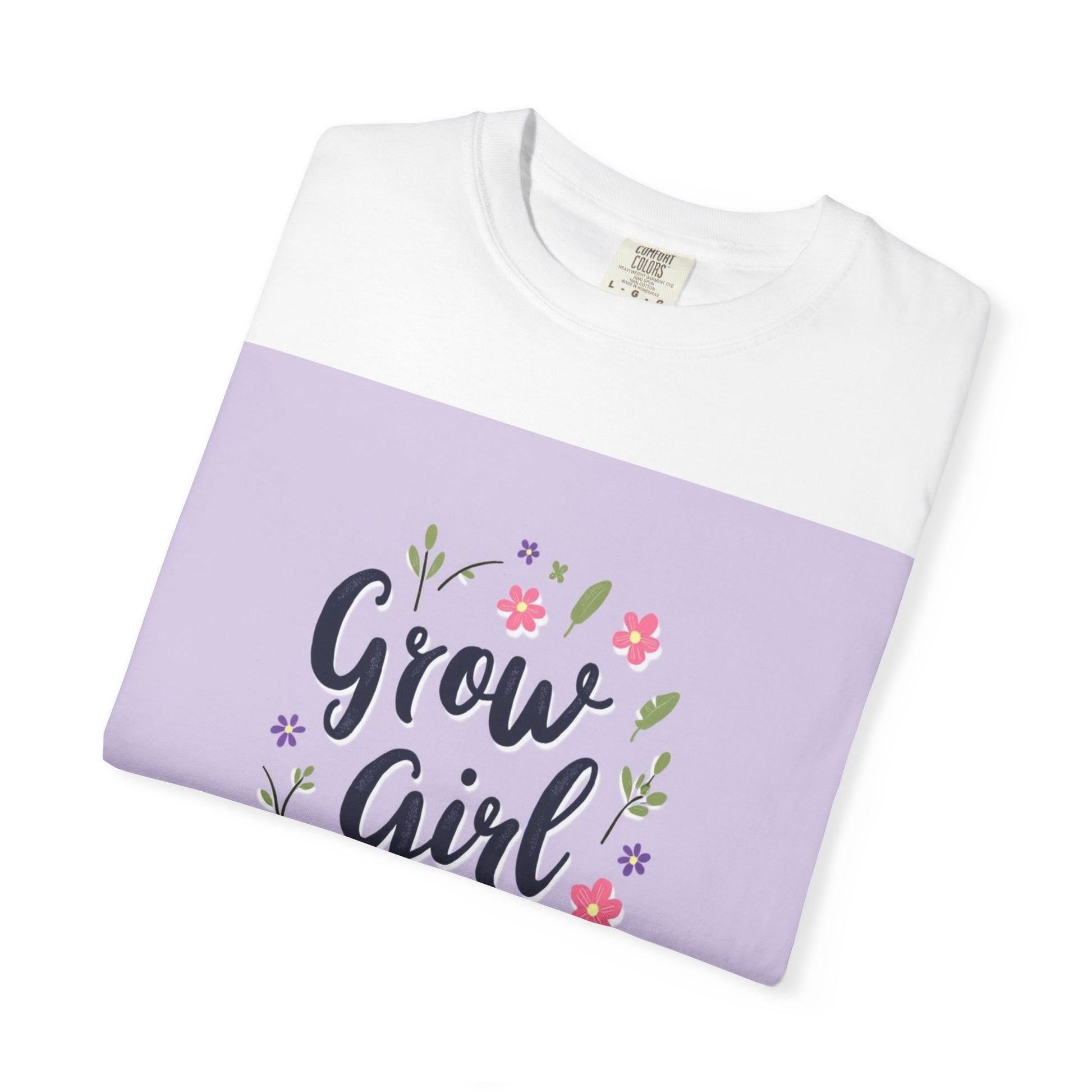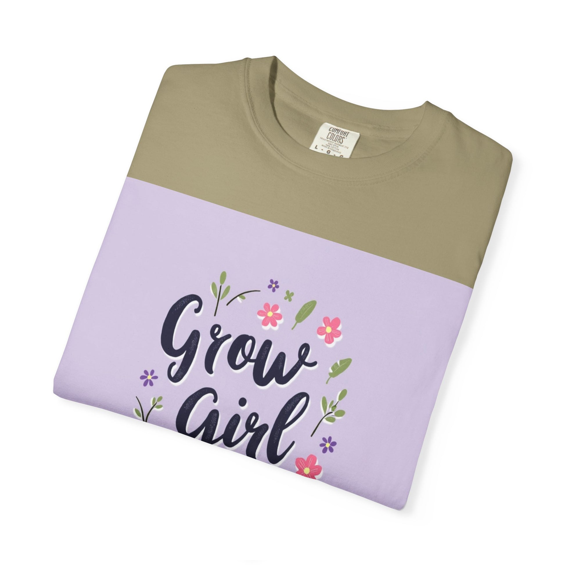 - Empowering phrase: “Grow Girl Grow” in bold navy blue hand-lettered script.