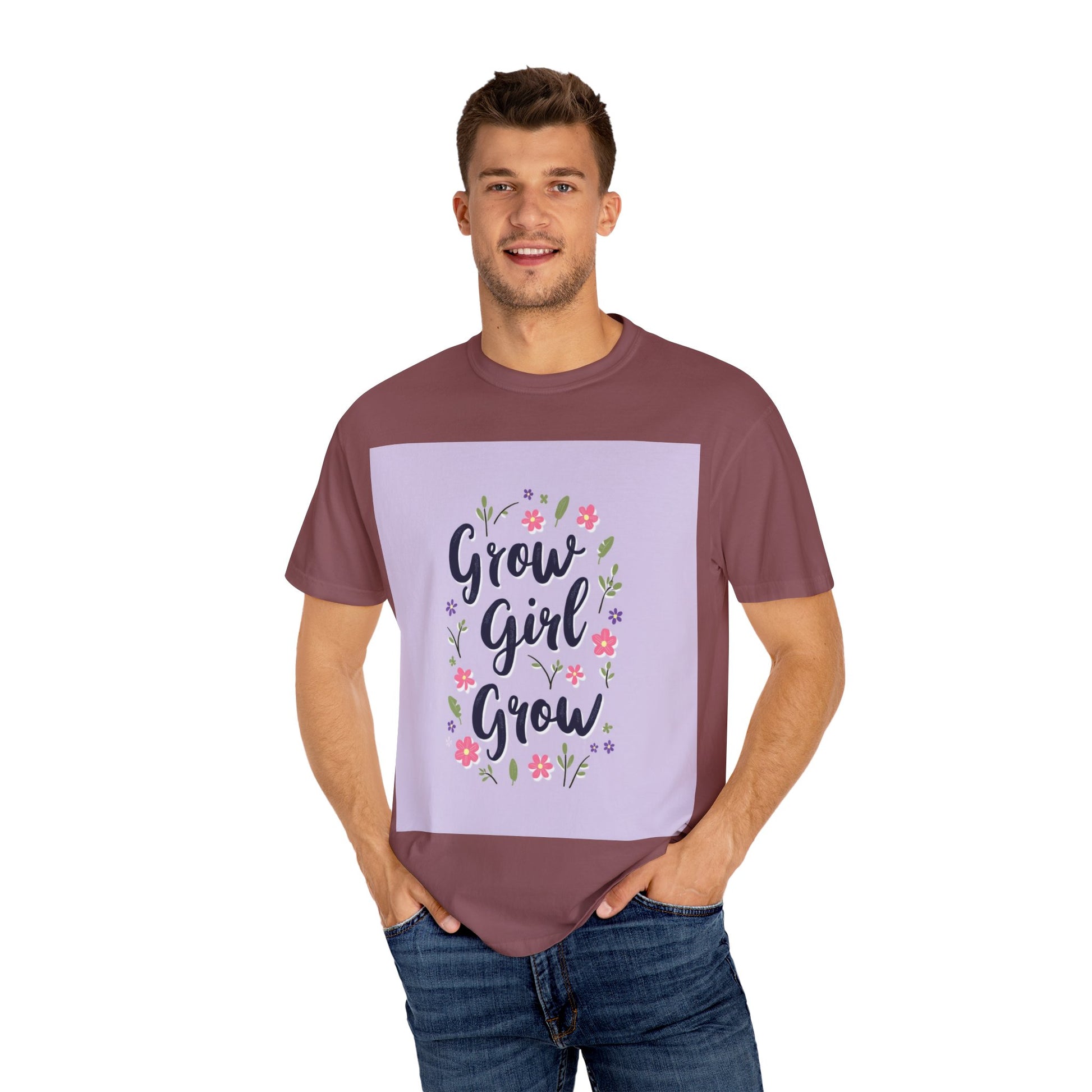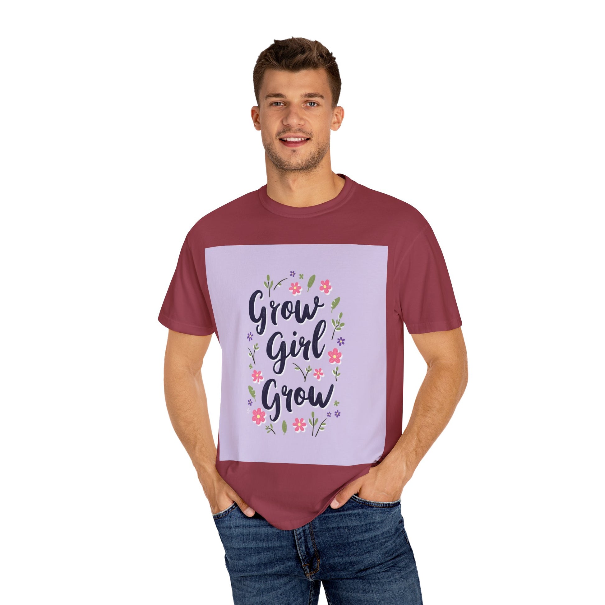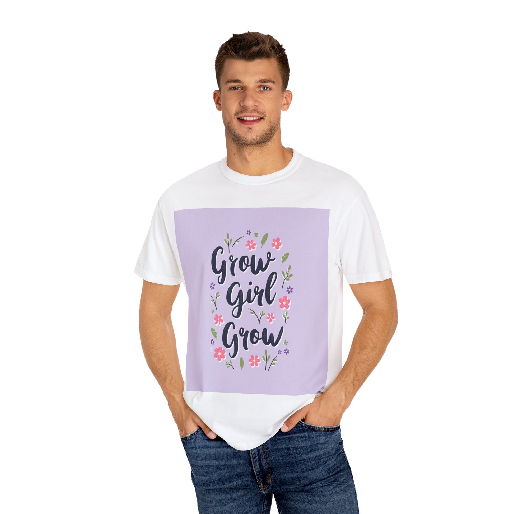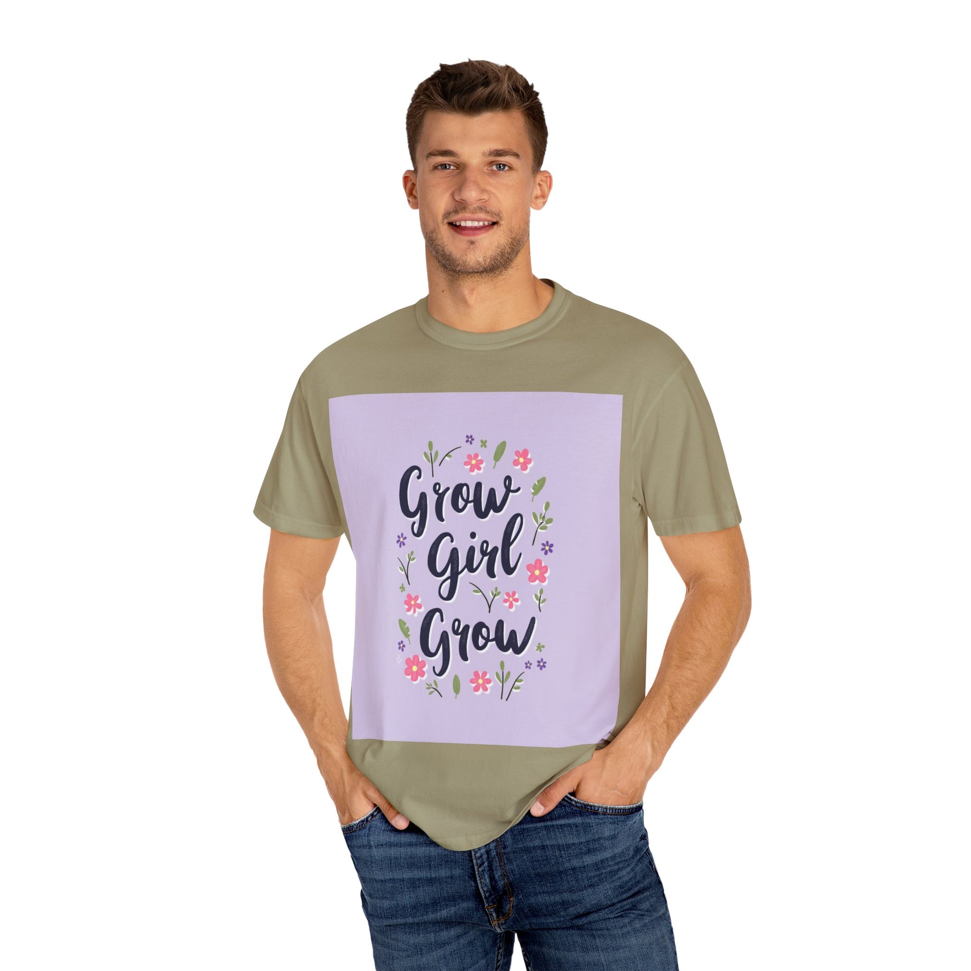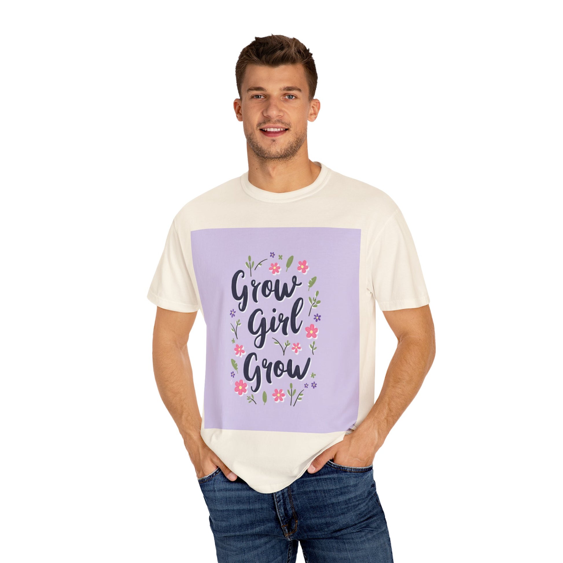 - Empowering phrase: “Grow Girl Grow” in bold navy blue hand-lettered script.
