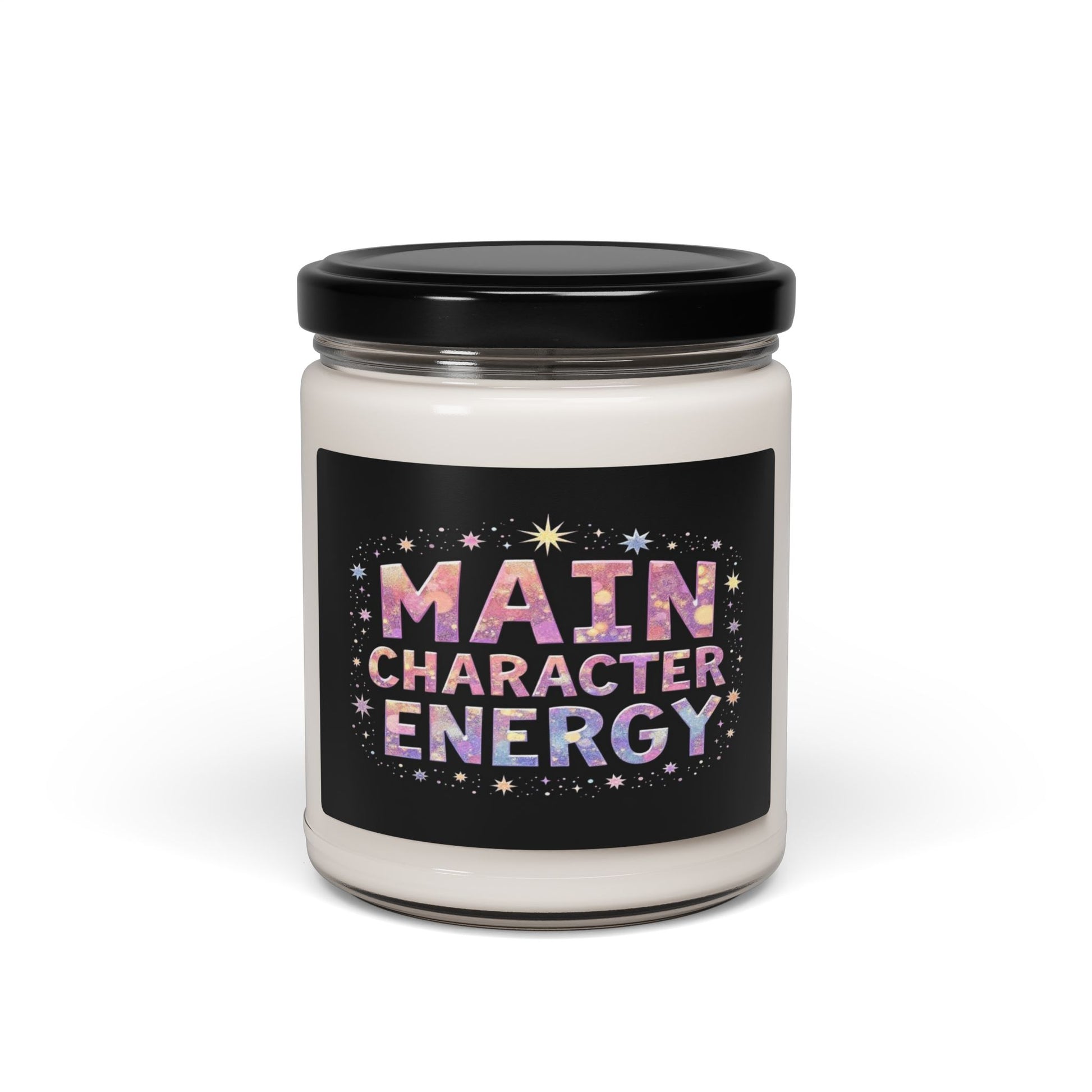 Cosmic Confidence is a vibrant graphic that turns bold self-expression into a visual statement. Centered on the striking phrase "MAIN CHARACTER ENERGY," the typography is rendered in holographic-style letters against a deep black backdrop, ensuring every word pops with drama and clarity.