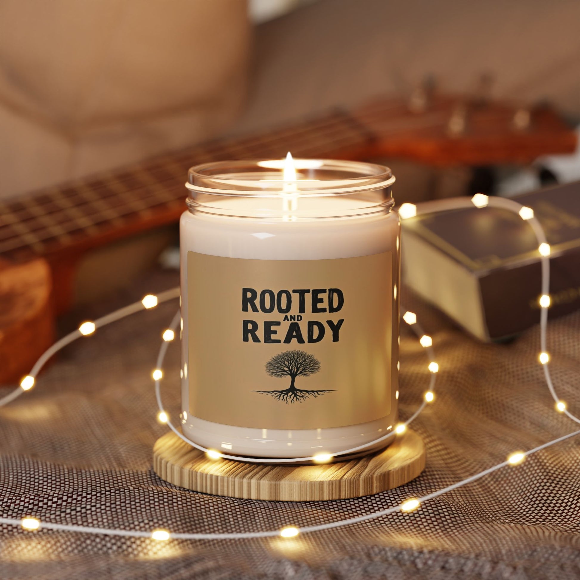 This minimalist graphic design features the bold text "ROOTED AND READY" positioned above a detailed black silhouette of a bare tree with an extensive root system. The tree is centrally placed against a warm, neutral beige background, creating a stark and impactful visual contrast. The tree's branches are intricately rendered, showing a complex network of limbs spreading outward, while the roots mirror this complexity beneath the ground. The typography is large, blocky, and uppercase, giving the image a strong, confident feel. The overall design suggests themes of strength, groundedness, preparedness, and connection to one's foundations.