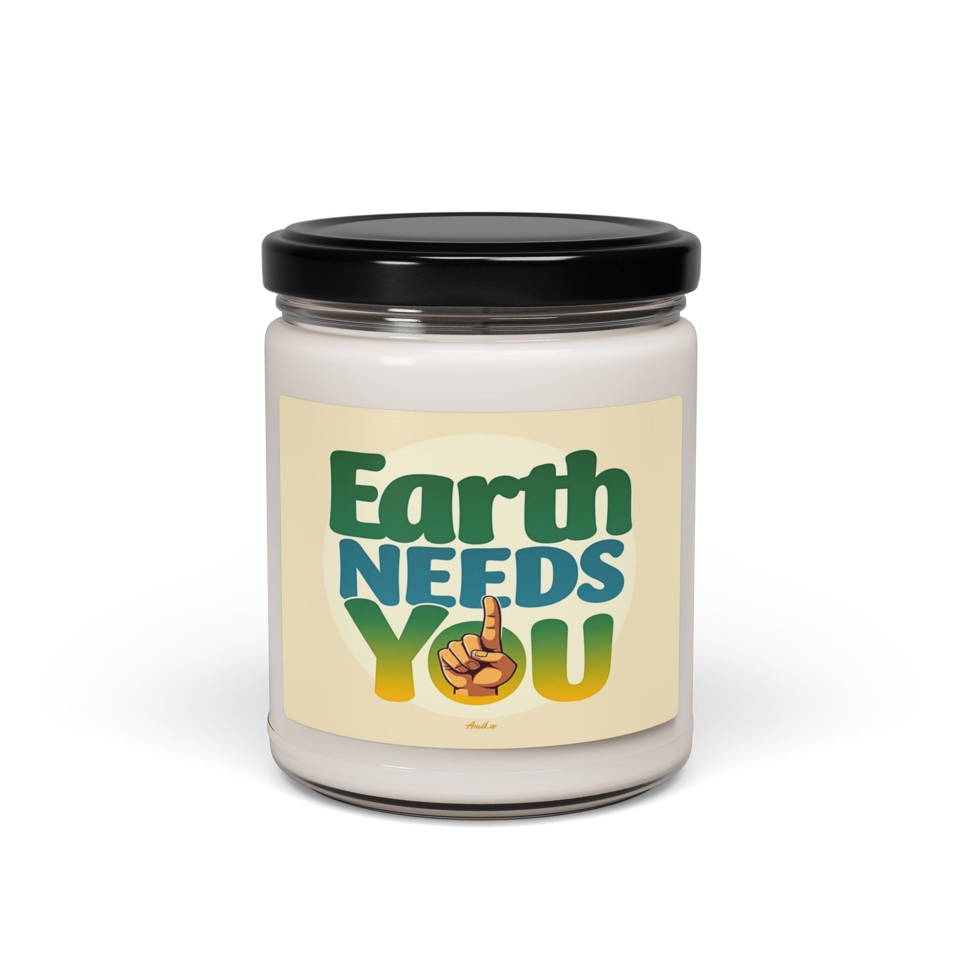This vibrant graphic design poster features the text "Earth Needs You" in bold, gradient green and blue letters against a light background. The typography is playful and dynamic, with each letter appearing slightly curved and three-dimensional. A stylized hand with an raised index finger is integrated into the word "YOU", symbolizing a call to action or personal involvement. The color palette transitions from green to yellow, creating a warm and energetic visual effect that suggests environmental consciousness. The image is signed by "Andla" in the bottom right corner, indicating the artist or designer responsible for this impactful graphic.