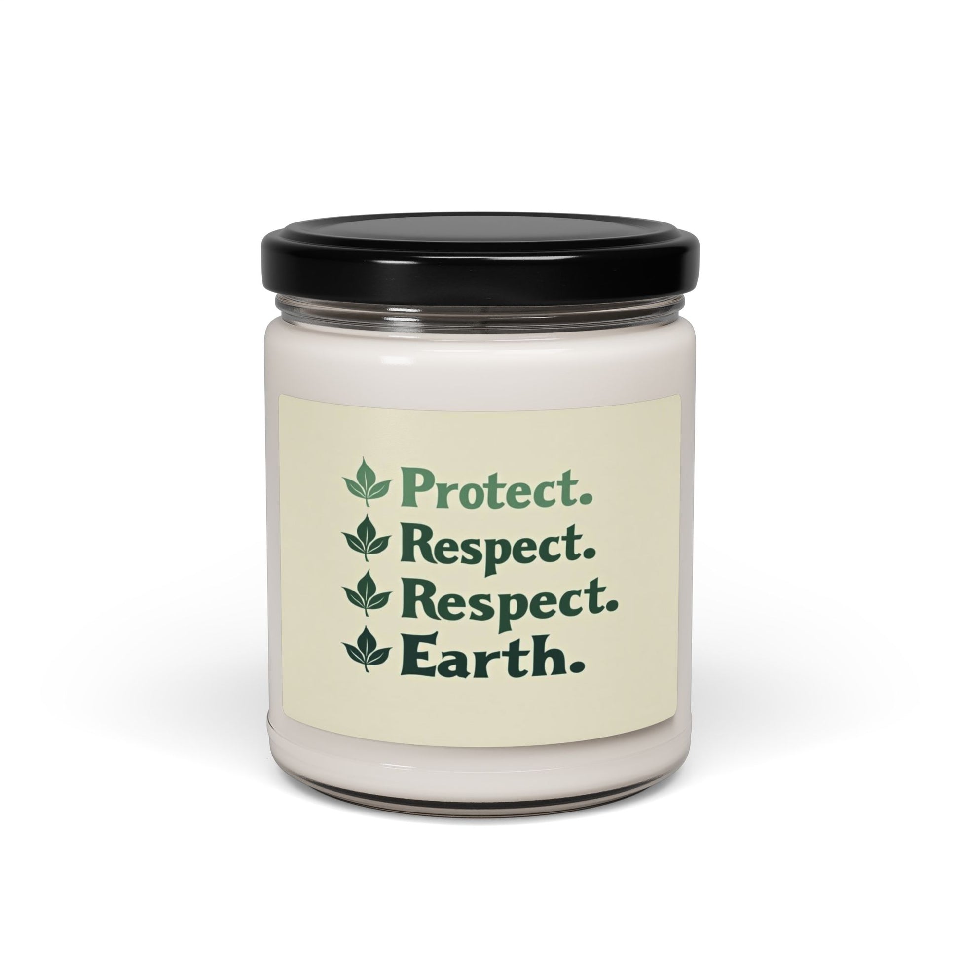 This minimalist graphic design features a powerful environmental message in shades of green against a light background. The image displays four stylized leaf icons alongside text that reads "Protect. Respect. Respect. Earth." Each leaf is slightly different, symbolizing the diversity of nature, and is placed to the left of each line of text. The typography is bold and clean, using a serif font that gives the design a classic, timeless feel. The color palette of deep green and cream creates a sense of natural harmony and environmental consciousness.