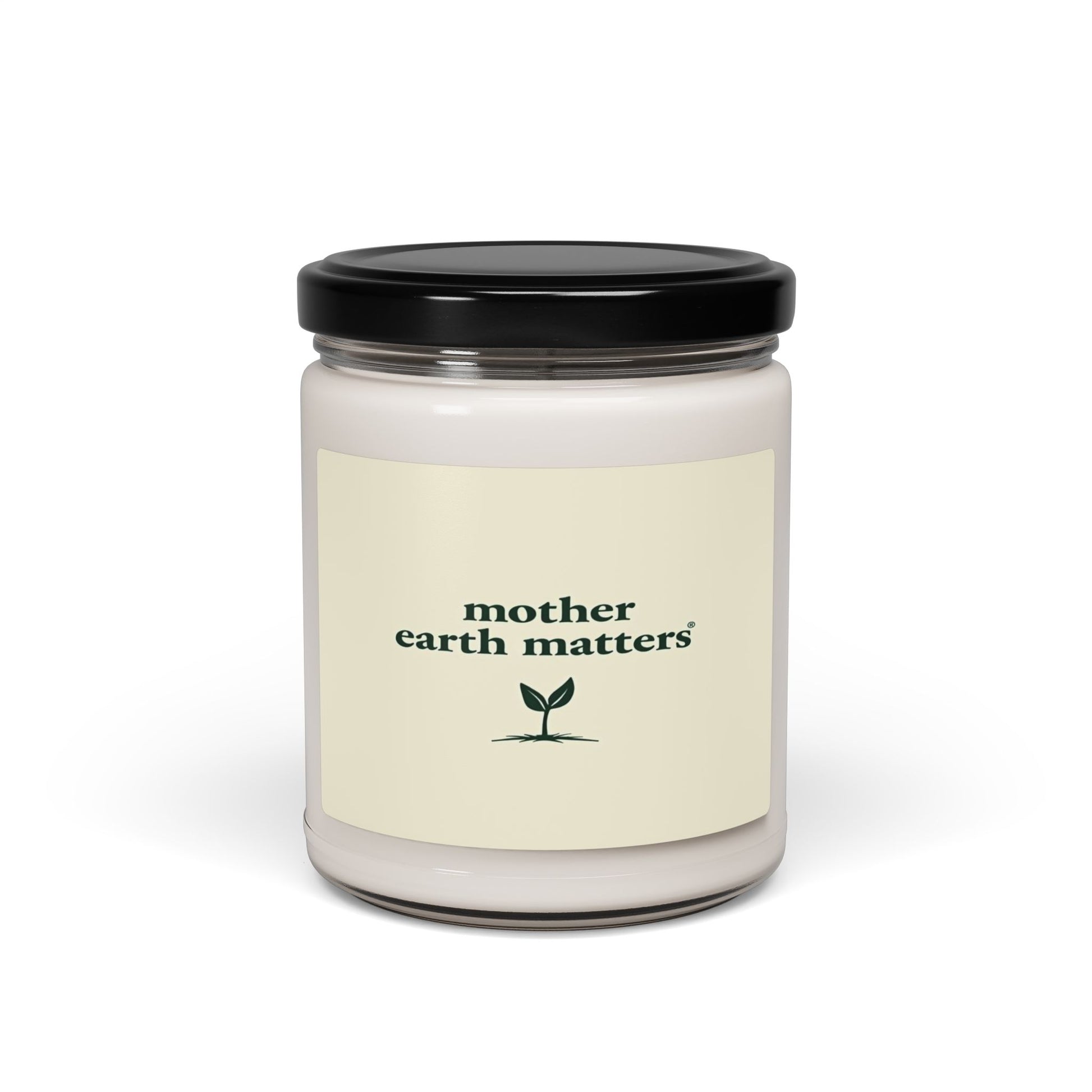 The image features the "Mother Earth Matters" logo set against a light, neutral background. The text is displayed in a deep green, serif font, creating a simple and clean aesthetic. Below the text is a minimalist graphic of a young plant sprouting from the ground, symbolizing growth, sustainability, and environmental consciousness. The seedling is rendered in the same dark green color as the text, with two small leaves emerging from a thin stem. The registered trademark symbol (®) appears next to the brand name, indicating this is an official corporate or organizational logo.