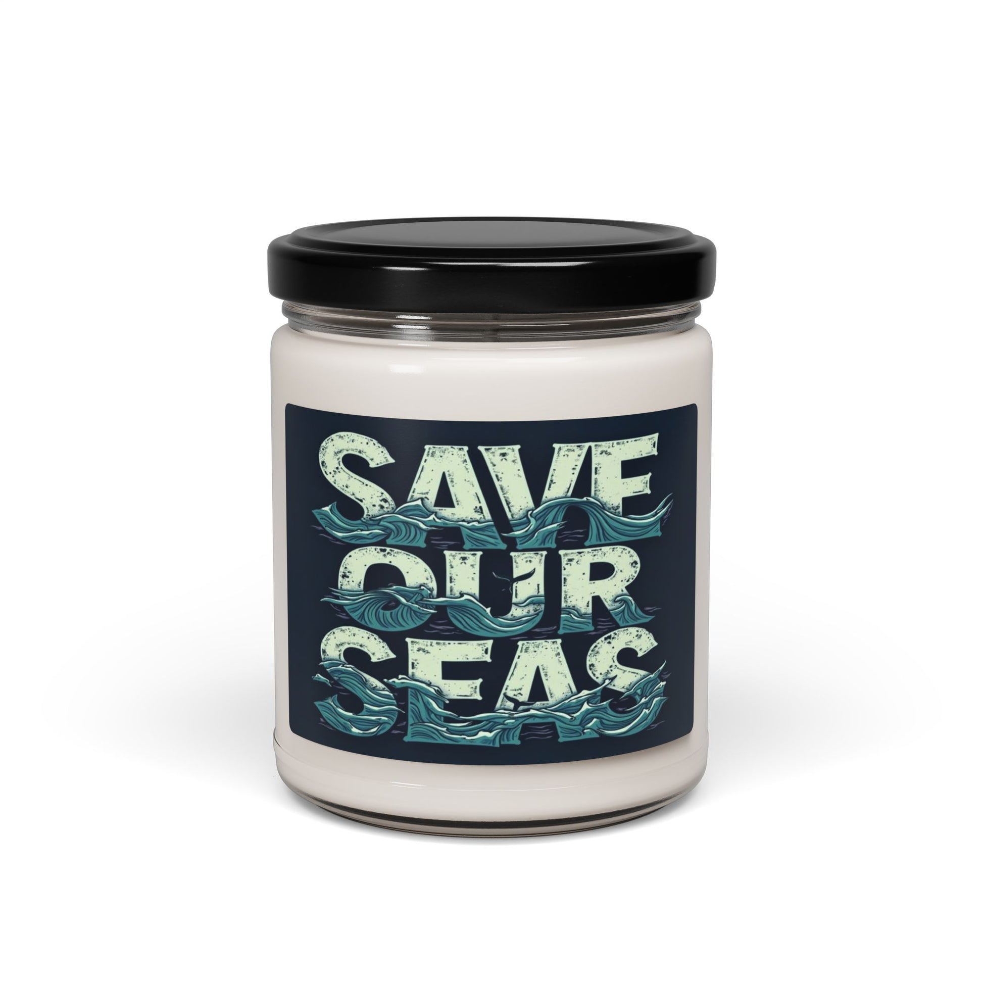 This striking graphic design features the text "SAVE OUR SEAS" with each letter intricately styled using stylized ocean wave motifs in shades of teal, blue, and white. The letters appear weathered and textured, giving the design a vintage, distressed look against a dark navy background. Flowing, dynamic wave patterns weave through and around each letter, creating a sense of movement and fluidity that echoes the marine theme. The artwork employs a detailed, illustrative style with curving lines and layered wave shapes that suggest the complexity and beauty of ocean environments. The color palette and wave imagery powerfully communicate a message of marine conservation and environmental protection.