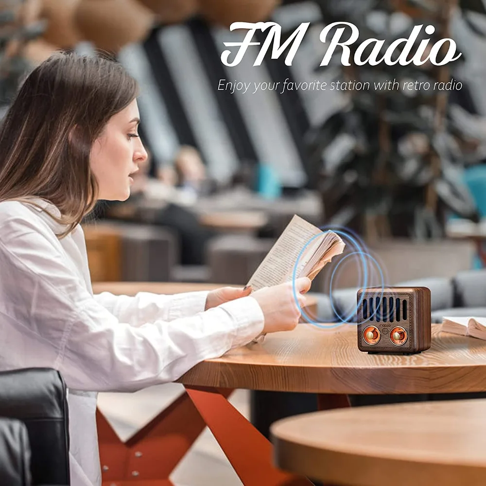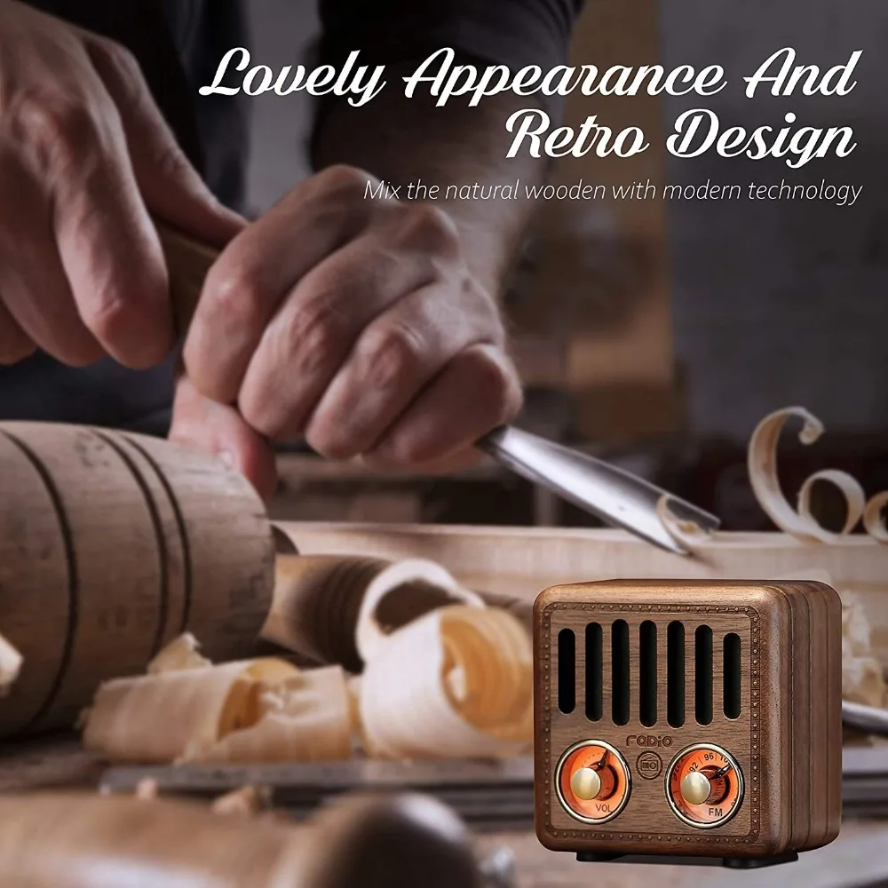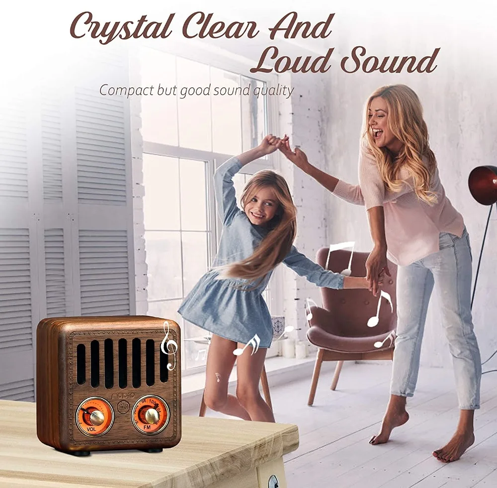 Solid Wood Portable Mini Retro FM Radio Bluetooth Speaker Old Fashioned Classic Style