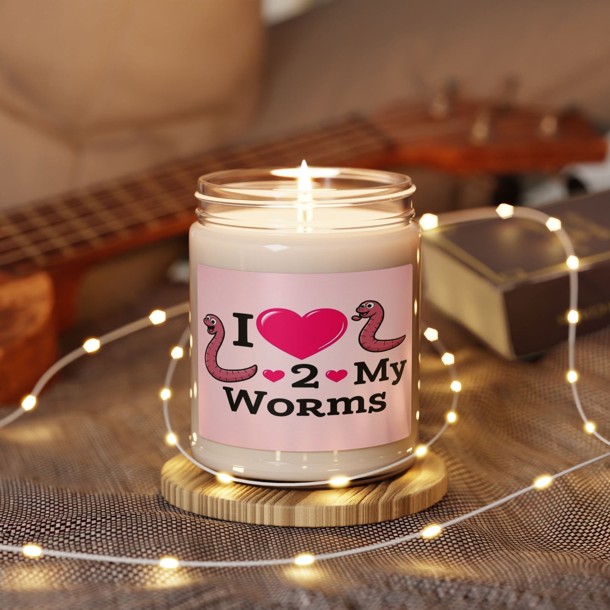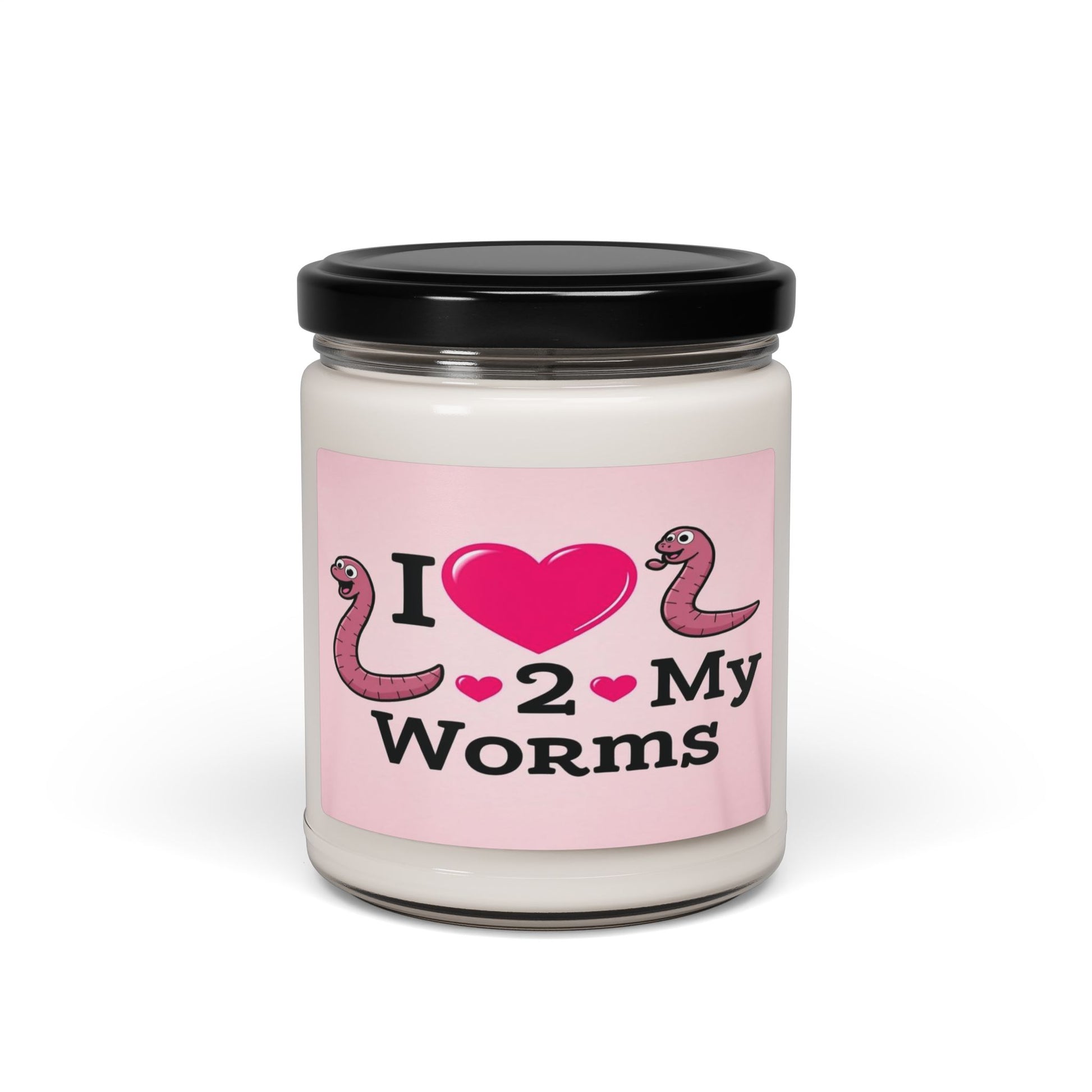This whimsical graphic features a playful design with two cartoon worms on a light pink background. The text reads "I ❤️ 2 My Worms" using a bright pink heart between stylized text. The worms are drawn in a cute, anthropomorphic style with large googly eyes and friendly expressions, giving them a cartoonish and endearing appearance. The design uses a simple color palette of pink, black, and white, creating a clean and eye-catching visual. The graphic appears to be designed for a t-shirt, poster, or other merchandise that celebrates an affectionate connection to worms.