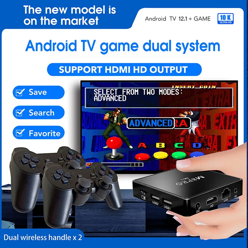 Video Game Console M8Pro Mini 4K 64G 10000 Retro Video Game Console 2.4G Wilress Android 12 TV Box Wifi MaliG31 CPU Dual System
